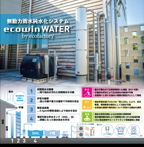 - 重力のみで稼働する、雨水純水化の 独自技術の解説
