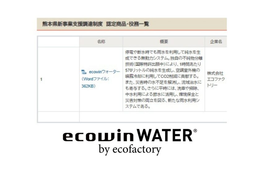 熊本県の「新事業支援調達制度」認定商品として正式に選定されました。