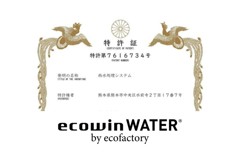 「ecowin WATER」雨水処理システムが日本特許を取得