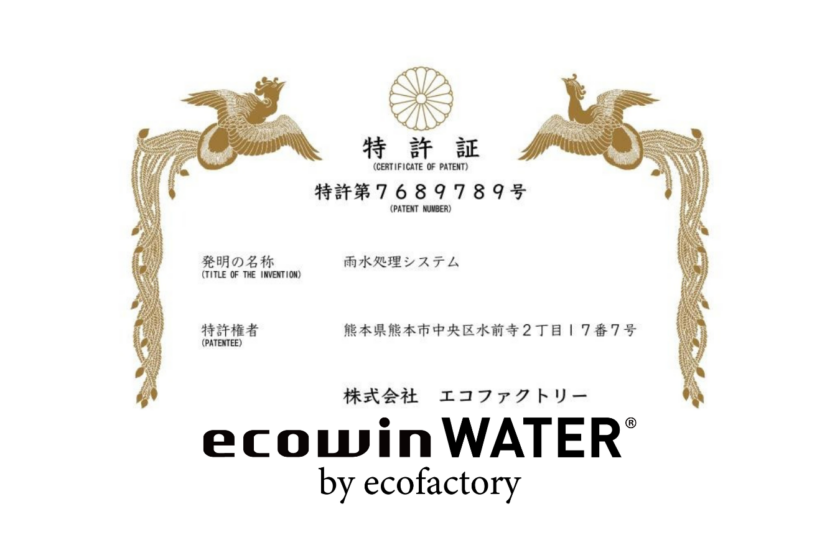 ecowin WATERが「雨水処理システム」で日本特許を取得