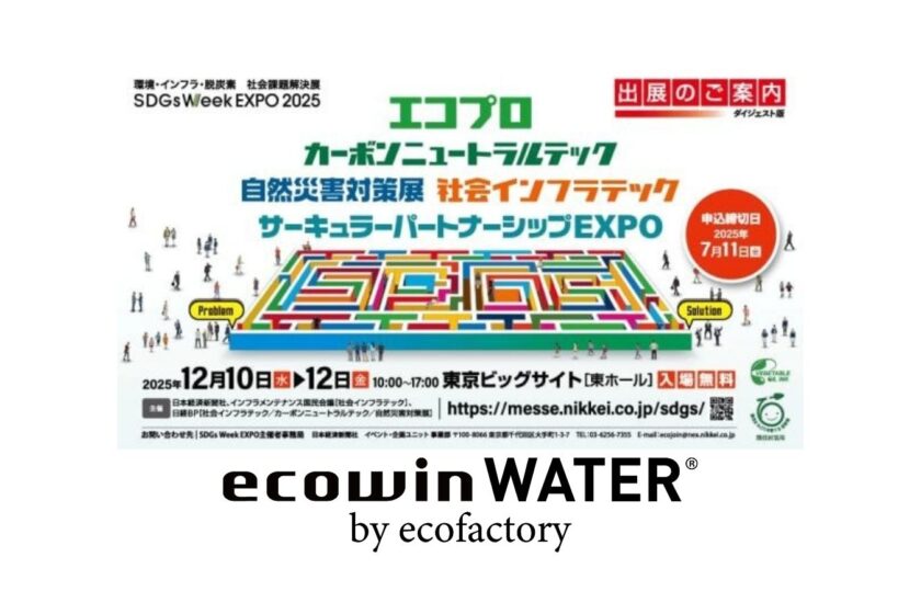 株式会社エコファクトリーは、2025年12月10日(水)~12日(金)に東京ビッグサイトで開催される「エコプロ2025(SDGs Week EXPO 2025)」 に、無動力雨水純水化システム「ecowinウォーター」を出展いたします。※今回出展する製品はecowinウォーターのみとなります。