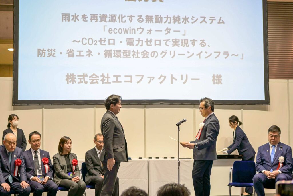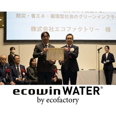 株式会社エコファクトリーが開発した雨水を無動力で純水化するシステム「ecowin WATER」が、「第8回エコプロアワード」で優秀賞を受賞しました。本受賞は、電力・CO₂ゼロで循環型社会・防災・省エネに貢献する技術として高く評価されたものです。