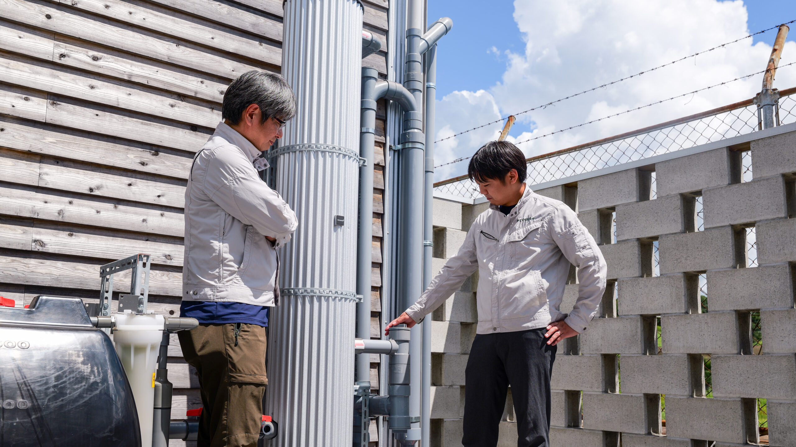 電力を使わず、維持管理も最小限。日常的な加湿や洗浄、災害時の備えまで、多目的に活用できる高性能な水処理技術は、私たちの長年の研究と現場の声から生まれました。 -