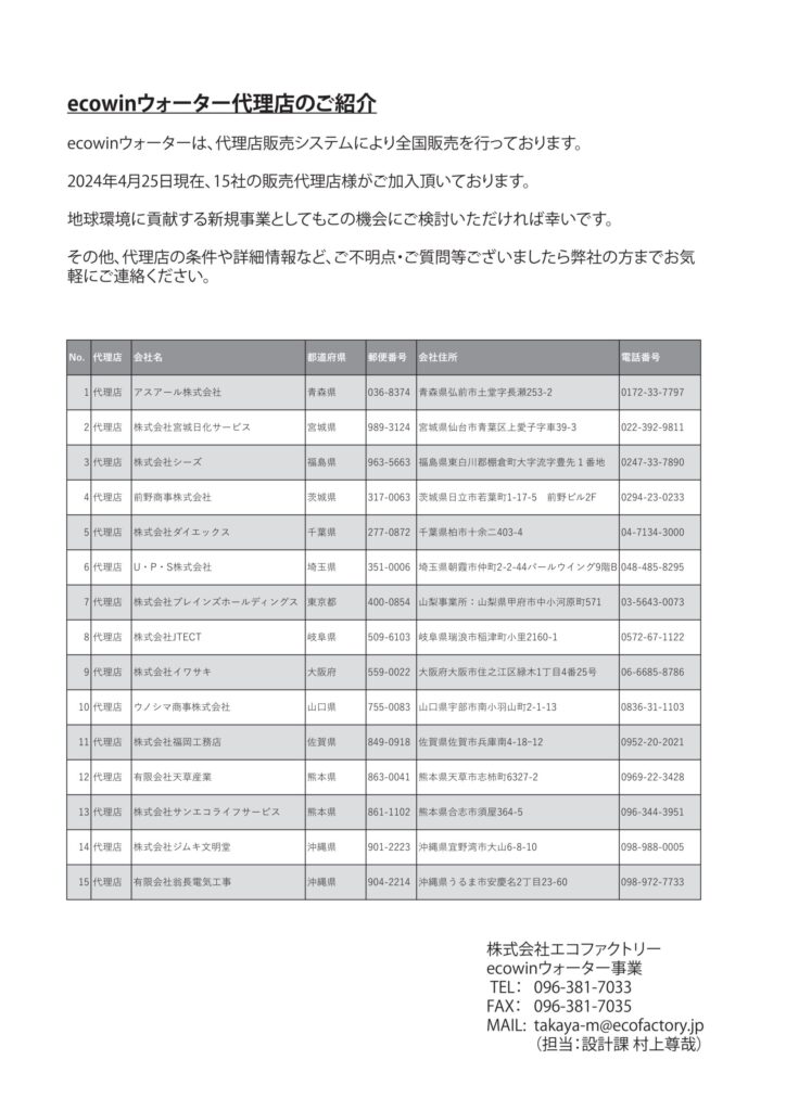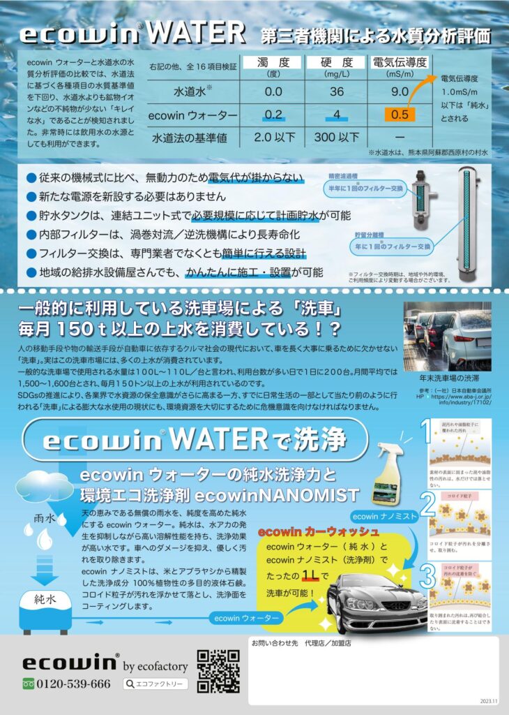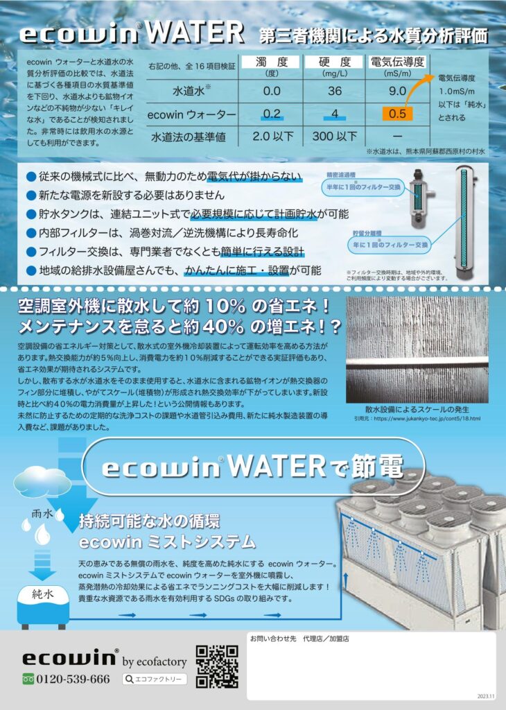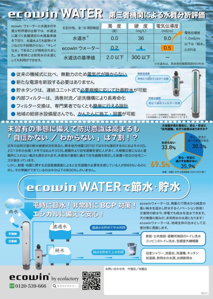 下記より資料をダウンロードしてください 資料一括ダウンロード エコファクトリー 採用事例集2023 ecowinシリーズ 総合カタログ ecowin カタログ 2023-01 ecowinハイブリッド カタログ ecowinエアー フライヤー ecowinエアー ウィンドウ フライヤー ecowinエアー スクエア フライヤー ecowinフィルター フライヤー ecowinレジスター フライヤー ecowin自治体通信(宇土市)+体育館比較 ecowinハイブリッド 自治体通信(志木市/菊陽町) ecowinハイブリッド ジチタイワークス(東京都町田市+北九州市) 【節電】ecowinウォーター フライヤー 【貯水・節水】ecowinウォーター フライヤー 【洗浄】ecowinウォーター フライヤー ecowinウォーター 概要説明資料 株式会社ミヤサカ工業_ポリタンク型_非常用浄水器『コッくん_飲めるゾウ_ミニ』製品カタログ ecowinウォーター販売代理店リスト